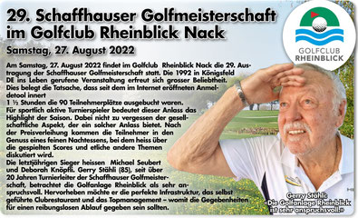 Artikel, über die 29. Schaffhauser Golfmeisterschaften, im Regionalsport Schaffhausen. Interview mit Gerry Stähli.
